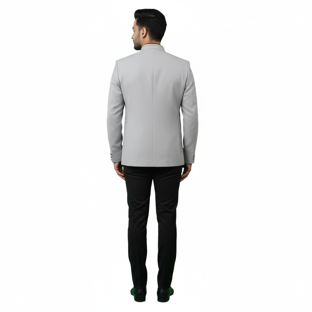 The Bespoke Aristocrat Bandhgala Suit — Steel Grey is the epitome of modern formal elegance. Designed for the gentleman who prefers "quiet luxury," this suit avoids overwhelming patterns in favor of strategically placed, high-impact craftsmanship. The cool, neutral base makes it an incredibly versatile piece, suitable for everything from high-stakes corporate galas to formal wedding receptions.