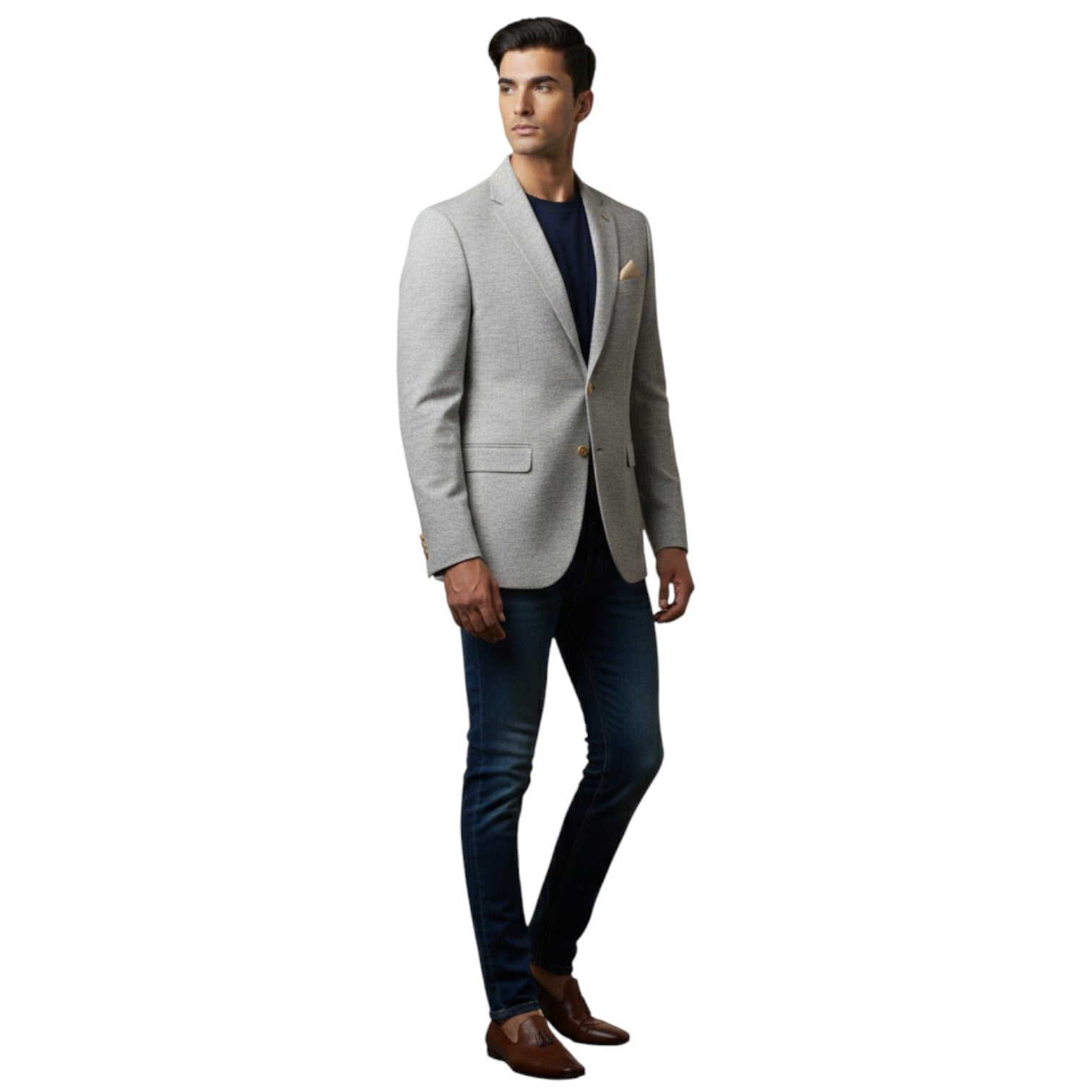 The Signature Urban Slate Textured Blazer is a versatile essential designed for the modern professional. Unlike traditional flat-colored suits, this blazer features a sophisticated micro-textured weave that adds depth and a premium tactile feel to the garment. Its light grey palette makes it a seasonal powerhouse, easily transitioning from a sharp business-casual office look to an elegant evening ensemble.